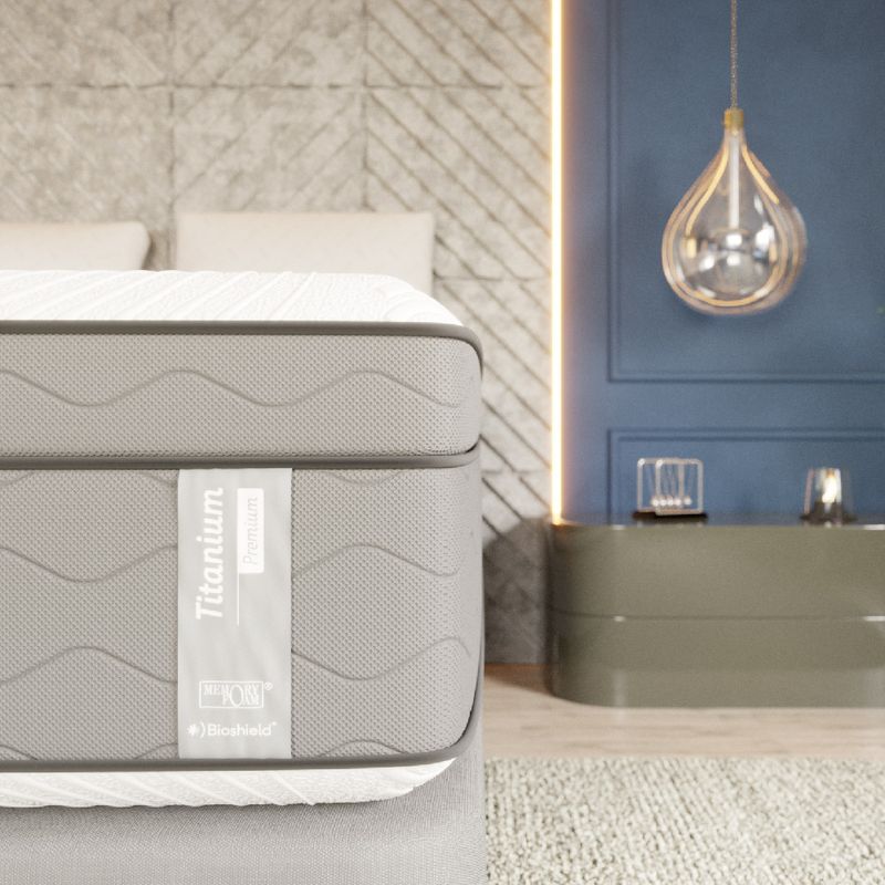 Nuestro Colchón Titanium Premium es ideal para quienes buscan mejorar la calidad de su descanso. La espuma Memory Foam® original con capas de confort, soporte y durabilidad, permite que liberes el bienestar de tu cuerpo mientras duermes y su Sistema de Resortes independientes Tipo Pocket con adaptación anatómica, alinea tu columna vertebral y evita movimientos que interrumpen tu sueño, es decir que ofrece máxima autonomía y libertad, ayudando que el desplazamiento de tu pareja no te despierte.