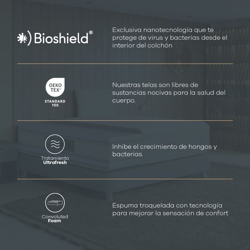 Contiene un sistema de resortes Bonnell que está diseñado para cuidar el colchón desde el interior y proteger los costados, y, adicional, un Refuerzo de zona lumbar en el centro que disminuye las deformaciones tempranas del producto, mientras brinda gran soporte a la espalda. Esta tecnología es perfecta para disfrutar de un buen descanso por mucho más tiempo.
