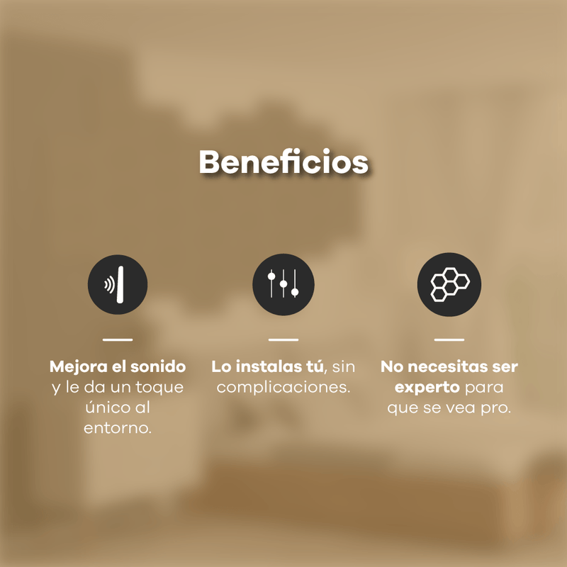 Convierte cualquier espacio en un lugar único. Gracias a su diseño versátil, estos paneles no solo mejoran la acústica, sino que también aportan estilo y personalidad a estudios, salas y habitaciones. Funcionalidad y estética en un solo producto.