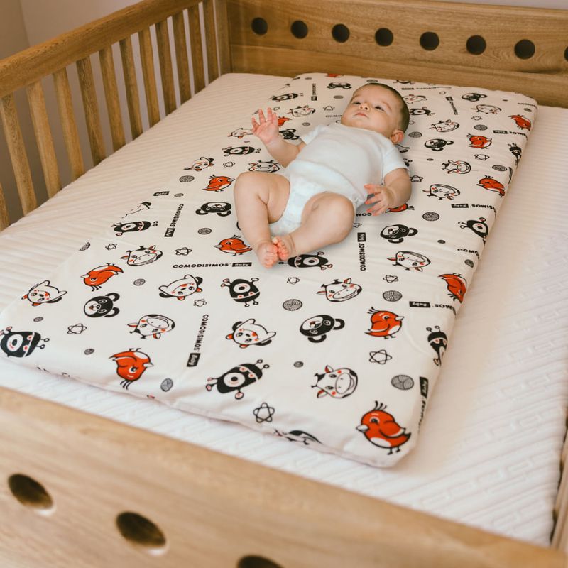 La colchoneta no solo cuida el descanso de tu pequeño, sino que también fomenta su desarrollo visual. Sus estampados están diseñados para captar la atención y estimular su curiosidad desde los primeros meses de vida, por eso cada descanso se convierte en una oportunidad para que explore colores y formas.