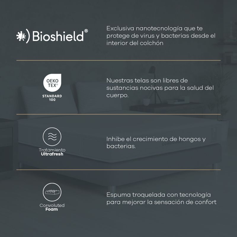 Su tratamiento antiácaros, hongos y bacterias lo convierten en un aliado perfecto para el descanso. Disponible con doble pillow o con un solo pillow, ideal para personas que buscan una doble alternativa de firmeza en un mismo colchón, el cual permite elegir un lado con pillow semifirme y un lado sin pillow más firme.