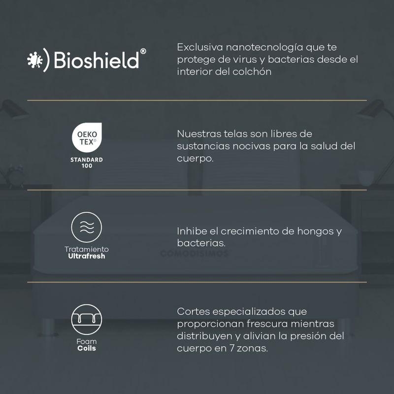 Material transpirable en los laterales que permite alta circulación de aire en el interior del colchón para disminuir la concentración de calor y así poder experimentar descansos más frescos y agradables.